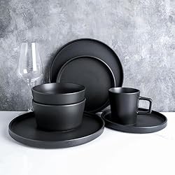 - 32-Piece Dinnerware Set - Stoneware is hip, cool and trendy. Especially in a fashionable black matte. These sets of dishes make a statement.